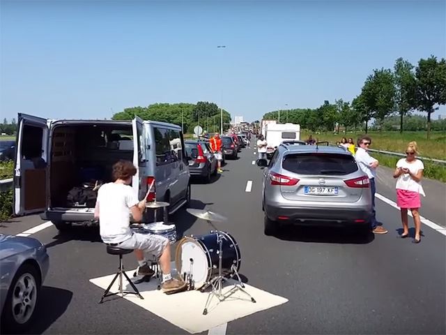La începutul lui iunie un accident în apropiere de oraşul olandez Eindhoven, a oprit traficul de pe autostrada A27. Din fericire pentru şoferii blocaţi în trafic bateristul unei trupe s-a întâmplat să fie printre ei şi să le acorde un mic ”recital” la tobele pe care le cară în dubă.