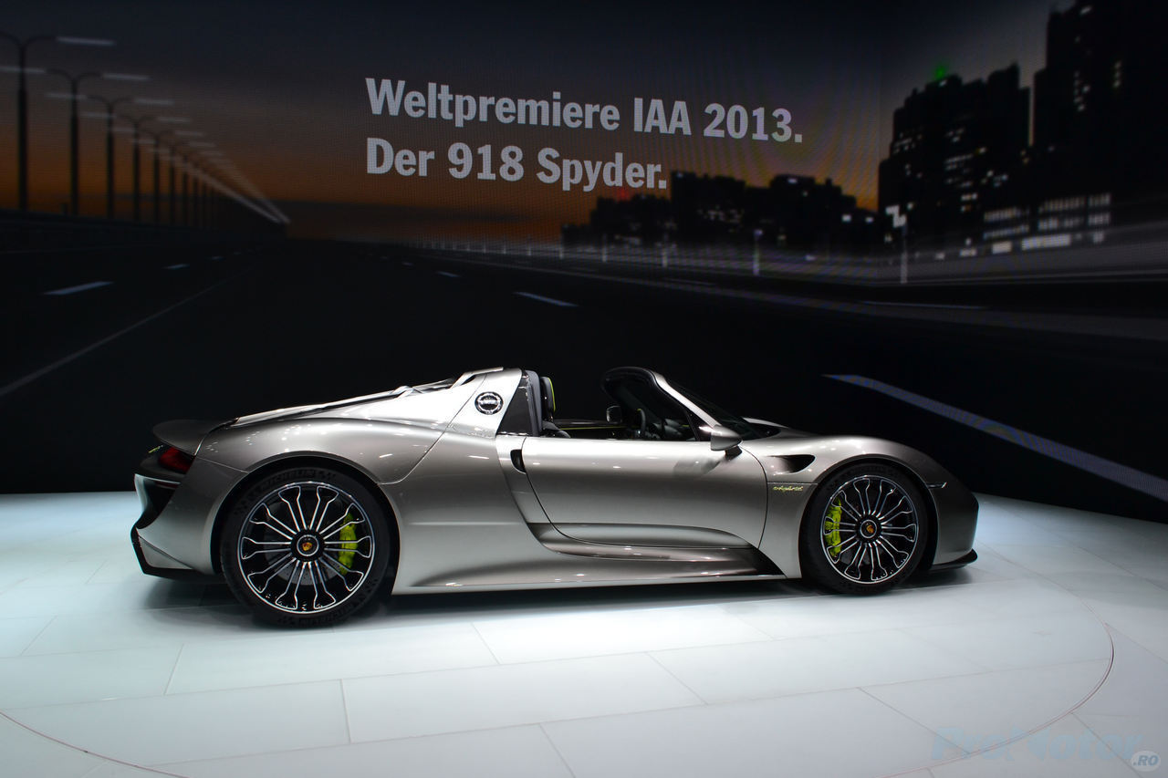 Interesant este şi faptul că Porsche 918 Spyder va fi o maşină hibridă de tipul plug-in, bateriile putând fi alimentate şi de la o sursă externă de curent electric. Prin încărcătorul rapid Porsche Speed Charging Station, timpul de încărcare se reduce de la 2 ore la numai 25 de minute.