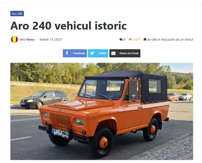 Acest ARO 240 a fost fabricat în 1977 și are un rulaj de doar 2.700 de kilometri (reali, menționează persoana care a publicat anunțul). Este echipat cu motorul original pe benzină L25, iar toate componentele sale sunt originale. Proprietarul actual declară că are toate actele la zi. Prețul cerut pentru acest exemplar de colecție este de 26.000 de euro. Anunțul a fost publicat pe aro4x4.ro.