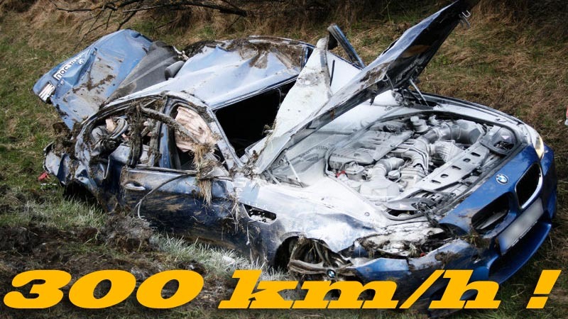 Acest accident teribil s-a petrecut pe autostrada A81 din Germania, pe o porţiune fără limită de viteză. Şoferul acestui BMW M5 mergea cu aproape 300 km/h, când o maşină s-a băgat pe banda sa, iar şoferul BMW-ului a frânat violent. Ca urmare, maşina a părăsit autostrada, rupând gardul de protecţie şi rostogolindu-se de câteva ori în decor.