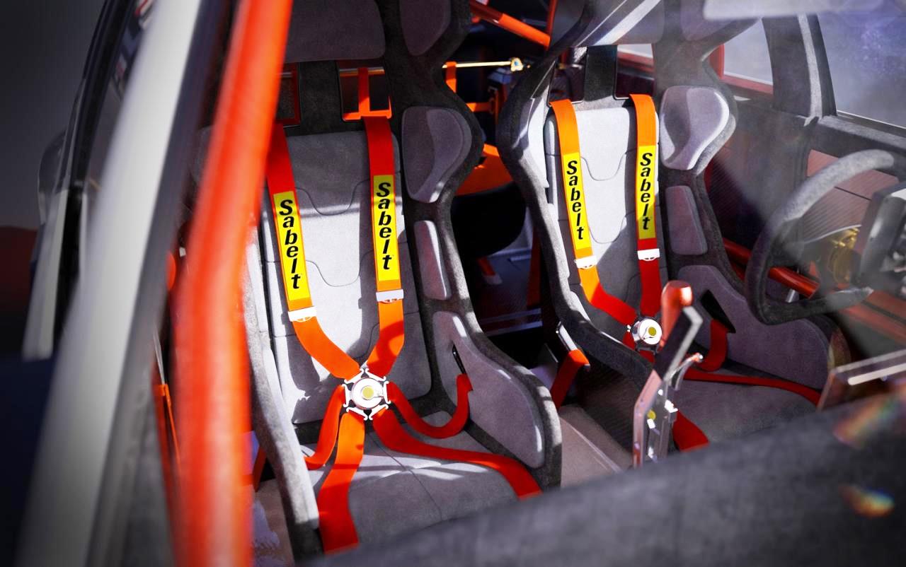 Amos Automobili a montat un rollcage specific mașinilor de competiție, scaune de tip scoică cu centuri de siguranță cu prinderi în 4 sau 5 puncte: De asemenea, mașina a primit un instrumentar digital, volanul și planșa de bord sunt îmbrăcate în piele Alcantara și o frână de mână hidraulică de tip „racing”. În „portbagaj” se regăsesc o roată de rezervă de dimensiuni normale și un stingător de incendiu.