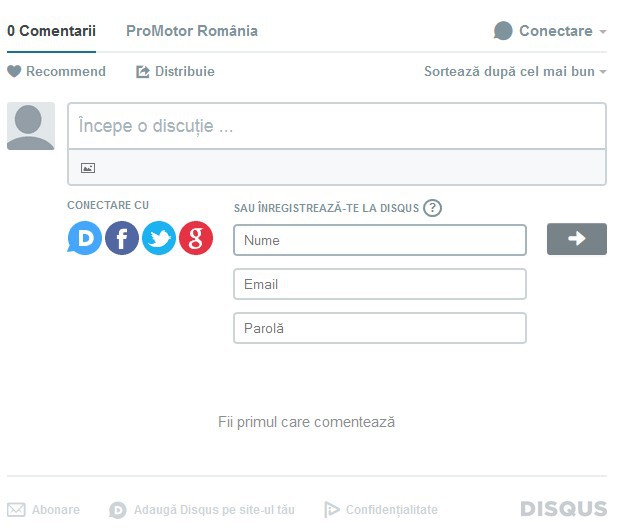 Dacă ai deja cont de Disqus, poţi să le loghezi şi să îţi spui părerea imediat. Dacă nu ai cont, poţi să îţi faci unul pe loc – fie îţi treci datele (nume, adresă de email şi parolă), fie foloseşti contul de Facebook, Twitter sau Google+.