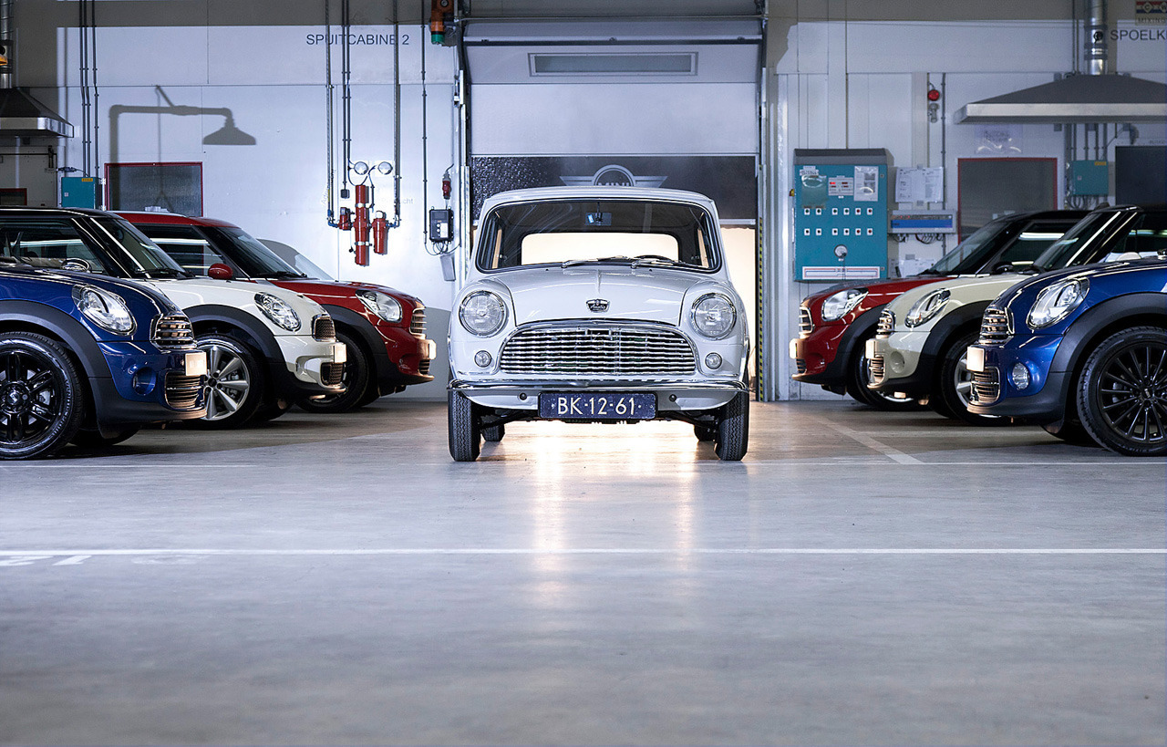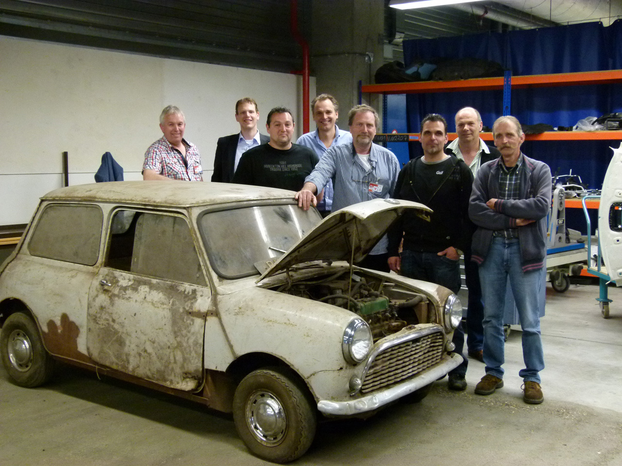 Găsit într-un hambar din Groningen, vechiul Mini a fost un candidat perfect pentru „misiunea reBorn” desfăşurată de BMW. Mai exact, germanii vor reporni, în 2014, producţia la modelele Mini în Olanda după o pauză de 48 de ani, de data aceasta în cadrul fabricii VDL Nedcar din Born.