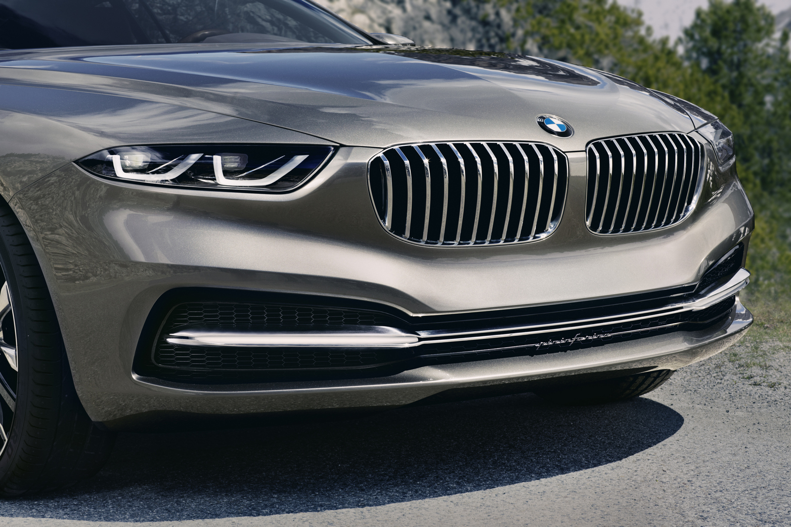 În partea din faţă se remarcă puternic „nasul de rechin” conturat de grila frontală cu cei doi „rinichi” înclinaţi spre şosea, care împreună cu farurile înguste cu LED-uri creează o senzaţie de „faţă încruntată”.