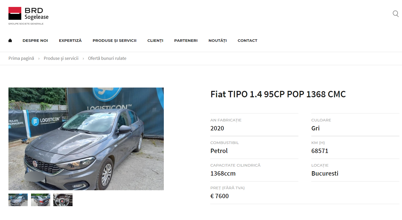 Mașina pe care am găsit-o este vândută de BRD și are 68.571 de kilometri la bord, fiind un exemplar produs în 2020. Mașina se prezintă într-o stare bună la exterior, dar și la interior. Este o mașină simplă, echipată cu faruri cu halogen și jante din tablă cu capace, iar anvelopele de dimensiuni mici nu vor costa foarte mult.