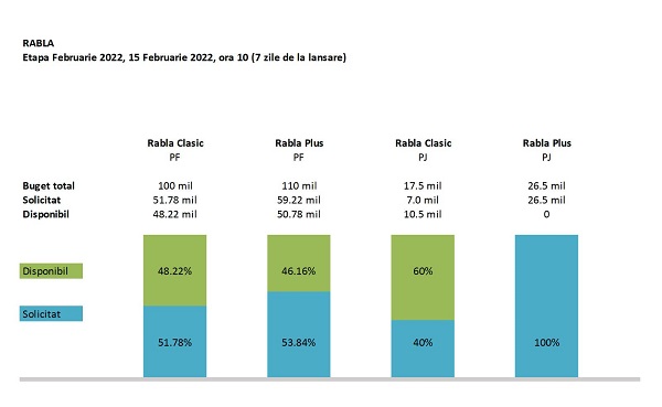 La programul Rabla Clasic pentru persoane fizice, care are un buget total de 100 de milioane de lei, s-au primit solicitări pentru 48,22 milioane (48,22%), iar disponibilul este de 51,78 milioane.