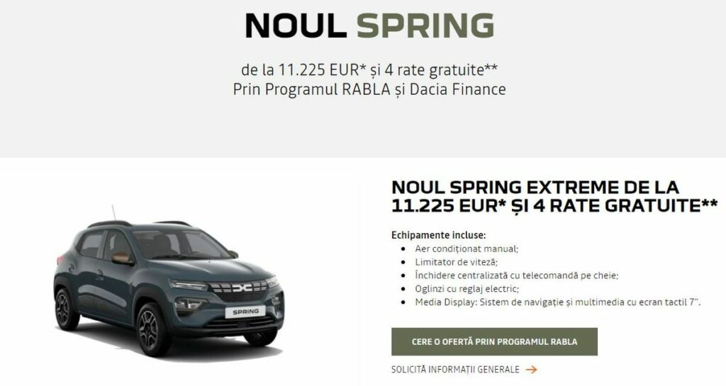 La acel moment prin Programul Rabla Plus cu toate bonusurile cea mai ieftină versiune Spring se putea cumpăra cu 8.400 de euro.