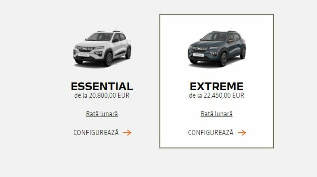 Am ales din configuratorul pentru Dacia Spring cu echiparea Extreme toate opțiunile disponibile și prețul final listat pe site-ul producătorului a fost de 23.550 de euro.