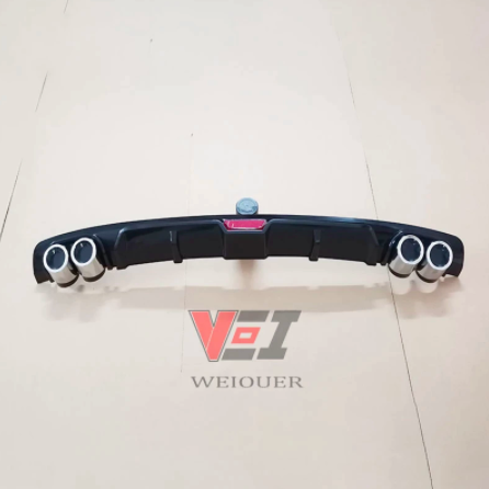 Pe AliExpress, un difuzor care poate fi atașat pe bara de protecție spate la Dacia Spring costă 103 lei. Ornamentul din plastic este disponibil negru sau argintiu și include patru evacuări false.