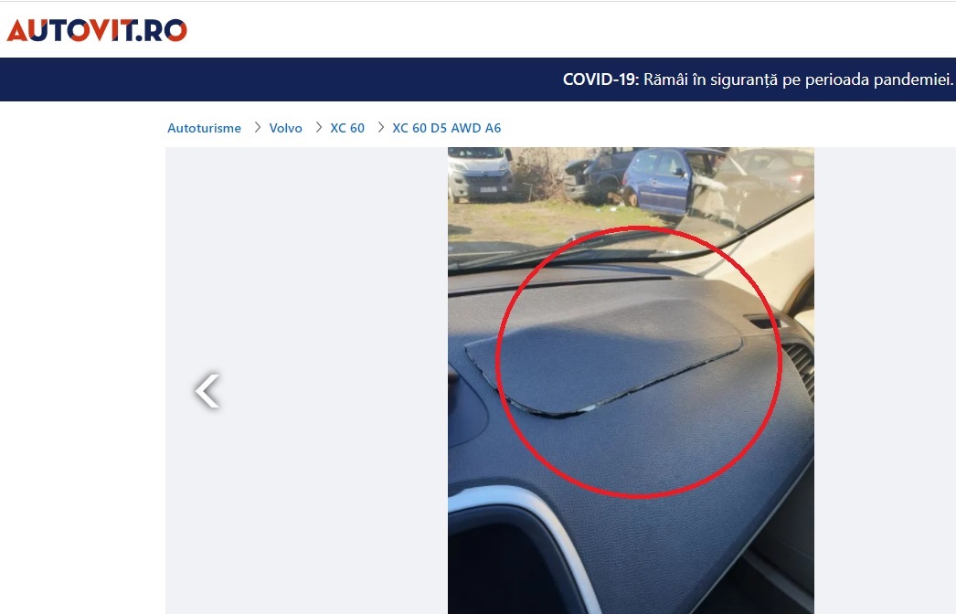 Totuși, pe piață se află la vânzare și mașini la mâna a doua care au airbag-ul sărit. Pe Autovit.ro am găsit un anunț cu un SUV Volvo care se vinde cu suma de 6.350 de euro. Proprietarul lui menționează în anunț acest detaliu, dar nu menționează de ce acel airbag a sărit.