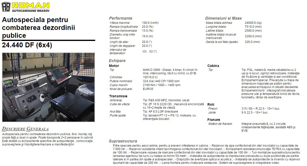 Autospeciala 24.440 DF a fost concepută ca vehicul pentru combaterea dezordinii publice, are un montaj roţi single faţă şi dual în spate. Poate transporta 2+2 persoane în cabină. Este dotată cu echipamente specifice de autoprotecţie, comunicaţie, supraveghere şi împrăştiere/marcare a manifestanţilor.