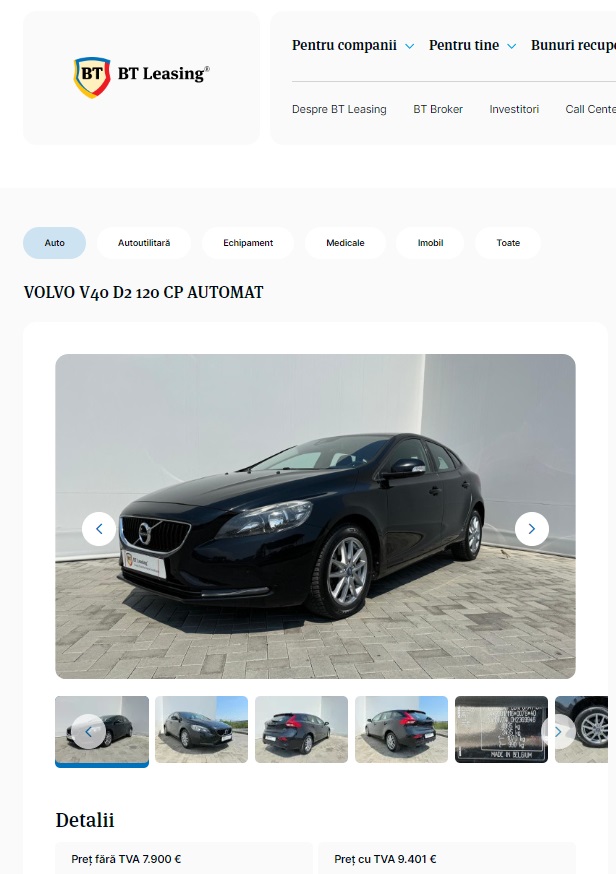 Mașina în cauză face parte din lotul de vehicule recuperate de Banca Transilvania și este un model 2016, primul an în care s-a produs facelift-ul lui V40.