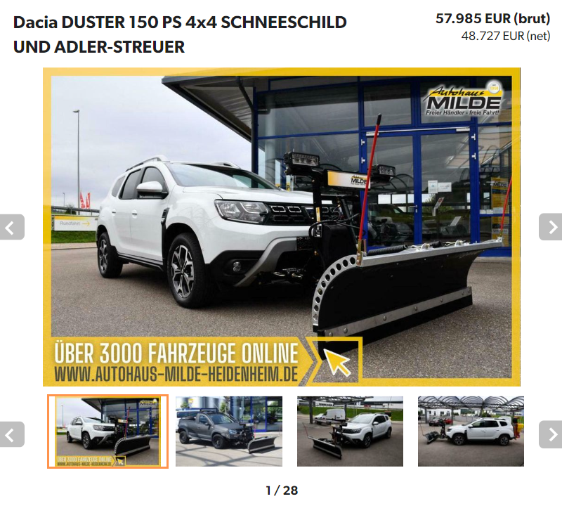 Până acum pare a fi vorba doar despre o mașină care a rămas pe lotul unui dealer și despre o greșeală când vine vorba despre preț. Nu este chiar așa, deoarece avem de-a face cu o Dacia Duster pregătită pentru iarnă, care a fost transformată în utilaj de deszăpezire.