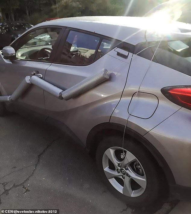 Un şofer bulgar a înfăşurat spumă de polistiren în jurul autoturismului, în încercarea sa de a opri ca vopseaua să fie deteriorată de uşile altor şoferi.