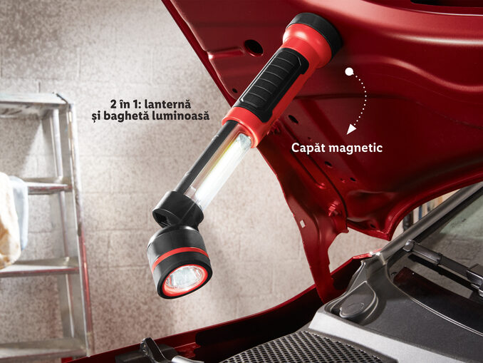 Lampa de lucru cu LED este disponibilă la prețul de 35 de lei. În ofertă sunt două produse: o lanternă și o baghetă luminoasă.