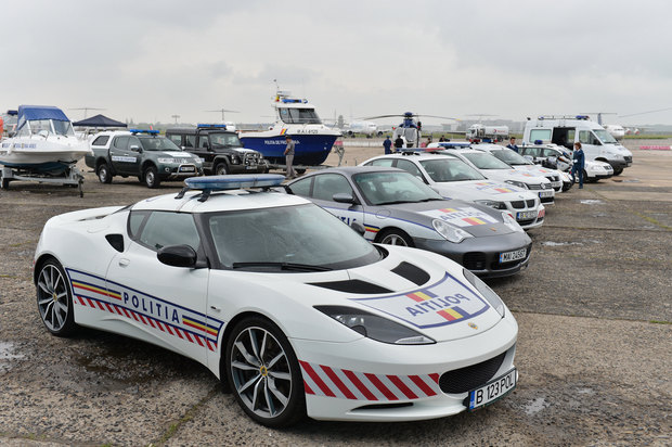 Dupa Marea Britanie si Italia, care au primit, din partea Lotus, exemplare Evora S pentru patrulare, un asemenea model a intrat si in dotarea Politiei Romane, in urma cu cinci ani. Lotus Evora S beneficiaza de 350 de cai putere si poate accelera de la 0 la 100 de km/h, in doar 4,8 secunde. Mai mult decat atat, viteza maxima atinge 280 km/h.