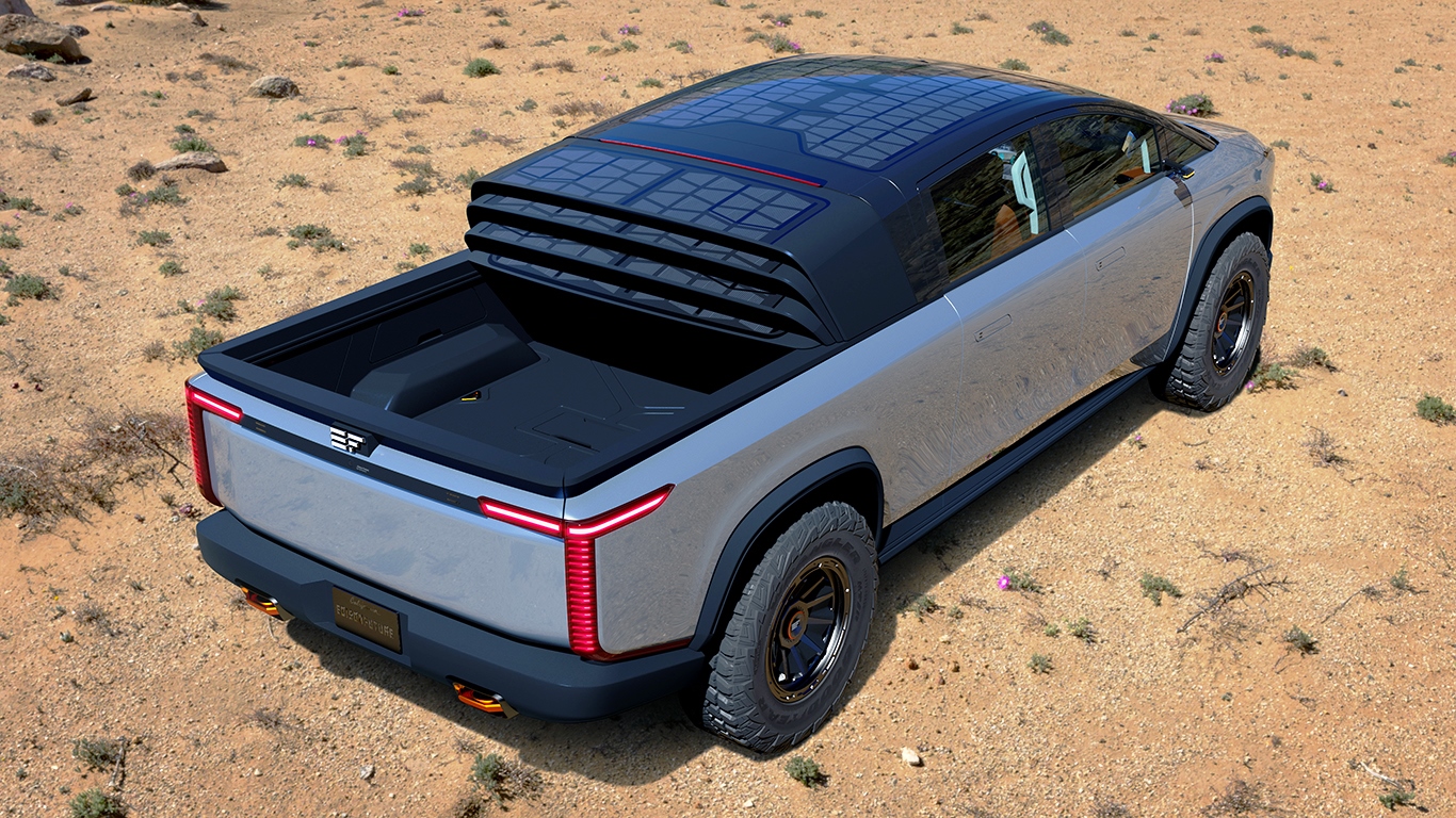 Practic, chinezii au clonat camioneta încă nelansată a miliardarului american Elon Musk. Diferența o fac panourile solare retractabile, care reprezintă sursa de alimentare a vehiculului celor de la Edison Future. Rețeaua solară îi asigură lui EF1-T o autonomie extinsă de aproximativ 56 de kilometri.