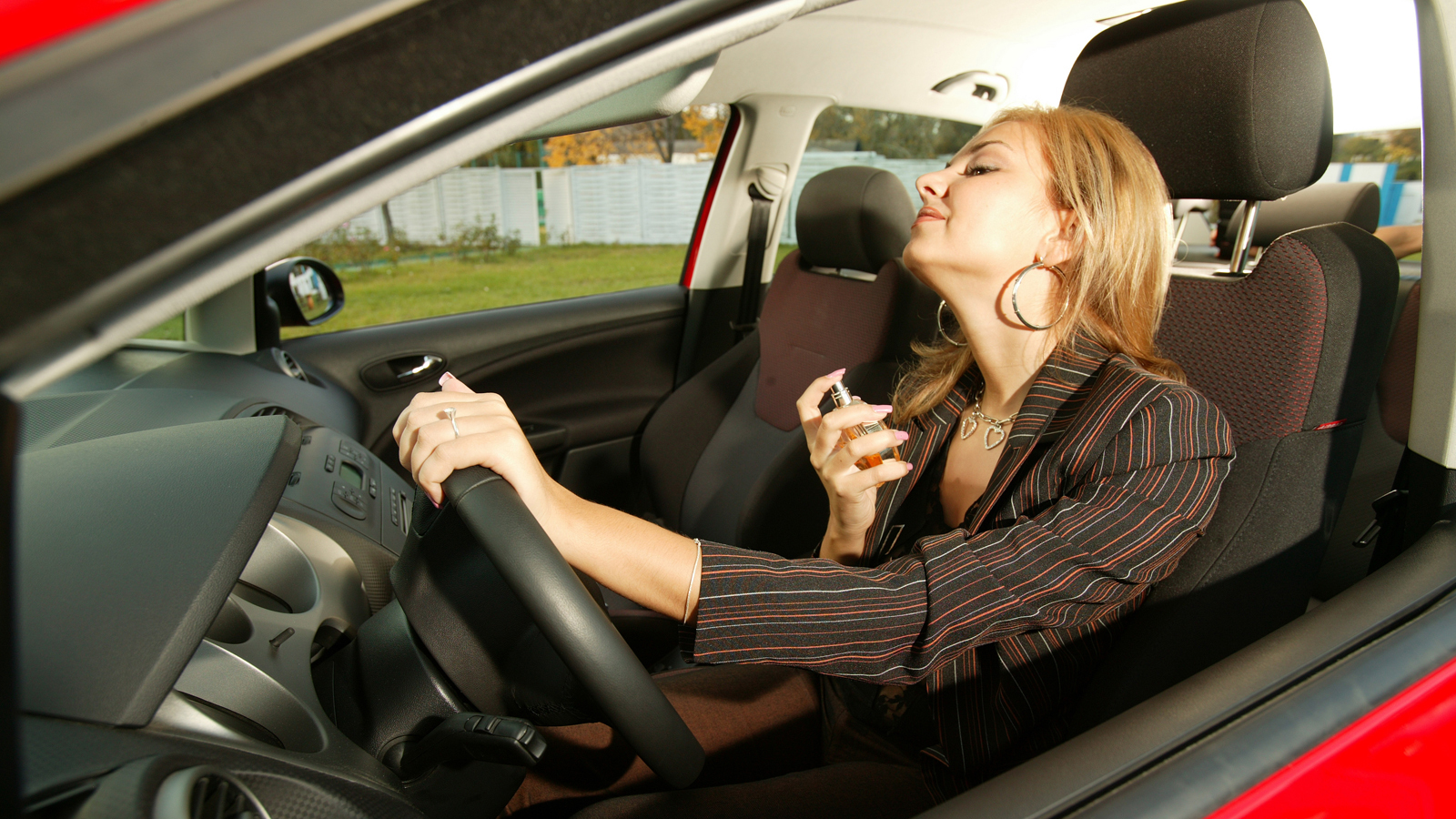 4. Scaunul şoferului NU ESTE bucătărie, salon de machiaj sau de coafură. Este foarte important ca atunci când te afli la volan singura activitate ar trebui să fie cea de şofat. Din păcate, foarte mulţi conducători auto nu doar conduc maşina ci mănâncă, îşi aranjează podoaba capilară sau chiar reîmprospătează rujul de pe buze.