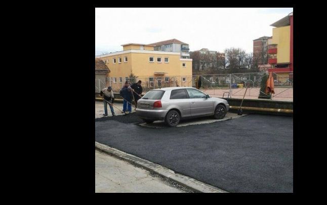 Cum se asfaltează o parcare în Aiud? „Suntem mai rău ca ăia din Caracal”