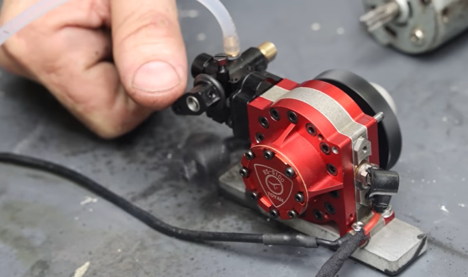 Videoclipul ne dezvăluie ceea ce ar putea fi cel mai mic motor rotativ din lume. Acesta ar putea fi chiar mai mic decât motorul rotativ care echipează de obicei o mașină controlată radio. Este vorba despre un motor Toyan RS-S100 cu un singur rotor Wankel. Are doar 2,4 centimetri cubi și produce 0,7 cai-putere, adică 0,5% din puterea unui motor Mazda 13B. Asta înseamnă că, dacă ar avea dimensiunea motorului de pe Mazda RX-7, ar produce de 2,7 ori mai multă putere.
