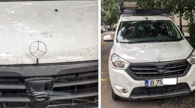 „Diferenţa dintre posibil şi imposibil stă în determinare”, spune o vorbă. Cam aşa stau lucrurile şi în cazul de faţă. Nu ştim dacă şoferul acestei Dacii a pierdut un pariu sau este victima unei farse, cert este că are pe capotă una bucată siglă mercedes hand made.