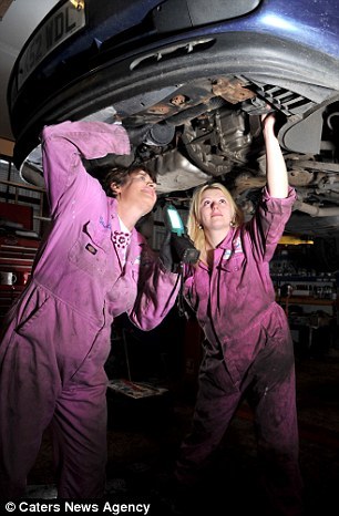 ”Only Girls” e primul service din Franţa dedicat femeilor, dar nu e primul din Europa – această onoare îi revine service-ului Caroline’s Cars, din Marea Britanie, unde femeile-mecanic sunt îmbrăcat în salopete… roz!