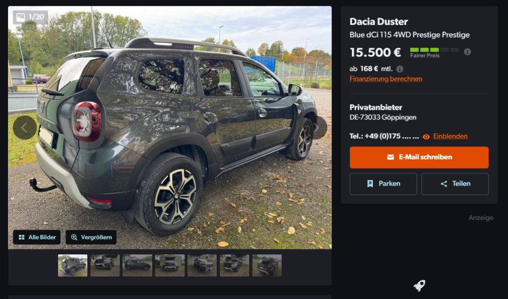 Cu noua generație Dacia Duster lansată oficial pe piață, Duster II devine o alternativă atractivă pe piața mașinilor SH. Cât costă și cum arată un exemplar cu 120.000 km la bord, bine dotat, listat la vânzare în Germania?