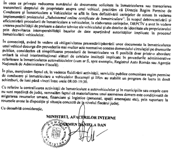 ”În scopul debirocratizării şi eficientizării procedurii de înmatriculare a vehiculelor, la elaborarea cerinţelor, DRPCIV a avut în vedere crearea posibilităţii de preluare a datelor tehnice ale vehiculului şi ale datelor de identitate ale proprietarului prin dezvoltarea interoperabilităţii bazelor de date aparţinând autorităţilor implicate în procesul înmatriculării vehiculelor”, se precizează în documentul publicat de Profit.ro.