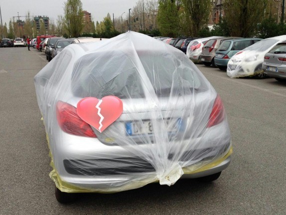 Astfel, unii dintre angajaţi s-au trezit cu maşinile din parcare înfoliate şi cu stickere de inimă frântă, pe care era scris următorul mesaj: ”Ne întristează că te vezi cu alta… Dar, chiar şi aşa, noi vom continua să ne gândim la tine”.