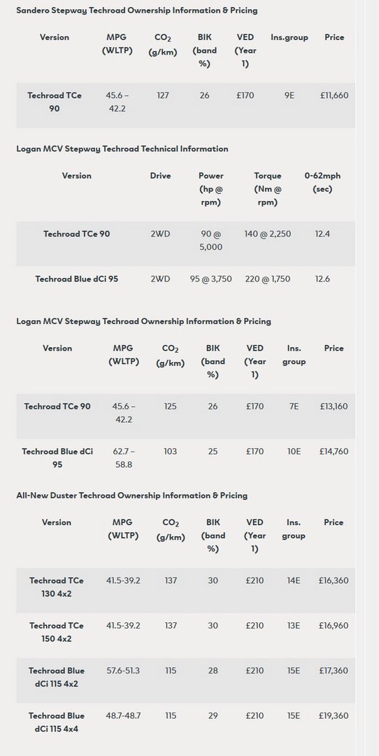 Preţurile de plecare sunt următoarele: pentru Sandero Stepway preţul de start este de 13,534 de euro, pentru Logan MCV Stepway – 15.275 de euro, iar pentru Duster 18.989 de euro.