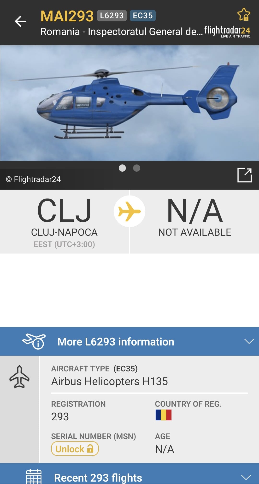 De asemenea, elicopterul survolează și drumurile din jurul municipiului Cluj. Așa cum se poate vedea în aplicația FlightRadar24, care monitorizează toate aparatele de zbor.