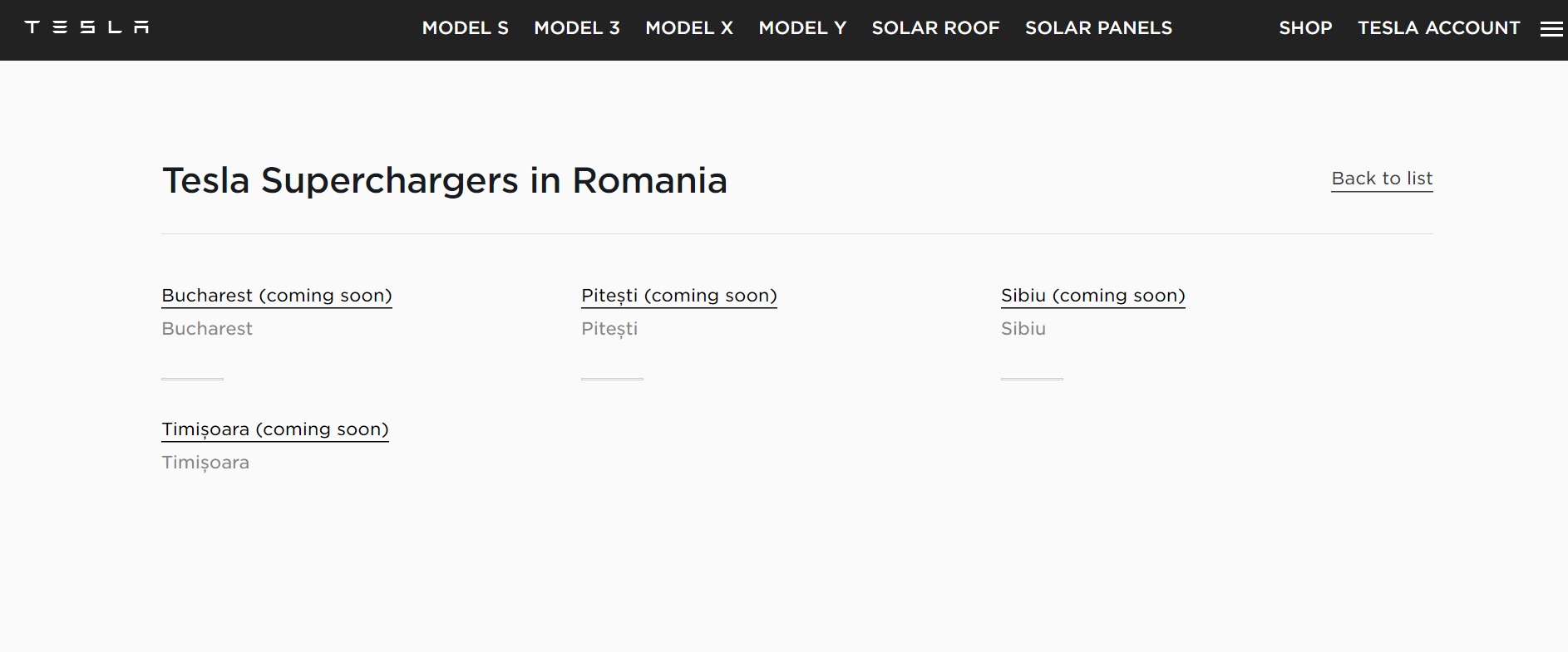 În decembrie 2020, Tesla a publicat pe site-ul său cinci posturi vacante pentru deschiderea unui showroom în București. ”Ne pregătim să intrăm în România”, era specificat în anunț.