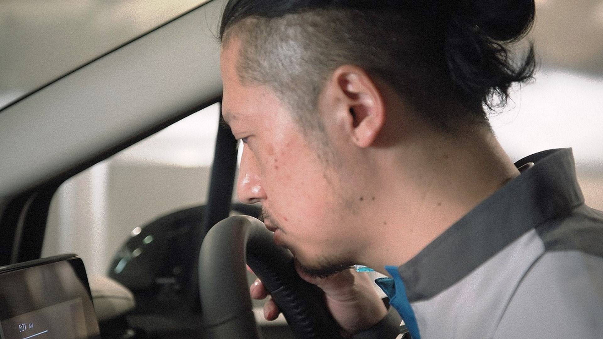 Odată așezat la volan, Ryunosuke începe și miroase efectiv fiecare suprafață, material, piesă și ornament în parte. Astfel, sunt mirosite scaunele, bancheta, cotierele, parasolarele, torpedoul, tetierele, suporturile pentru pahare și buzunarele portierelor. Ele sunt verificate pentru a avea mirosul corespunzător.