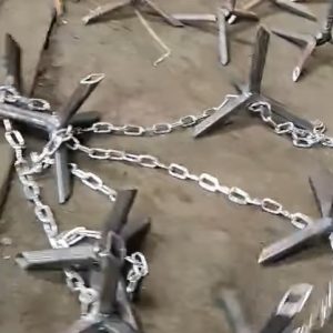 Pe pagina de Facebook a fierăriei au fost distribuite imagini cu țepi din oțel, meniți să spargă cauciucurile și să oprească înaintarea vehiculelor rusești.