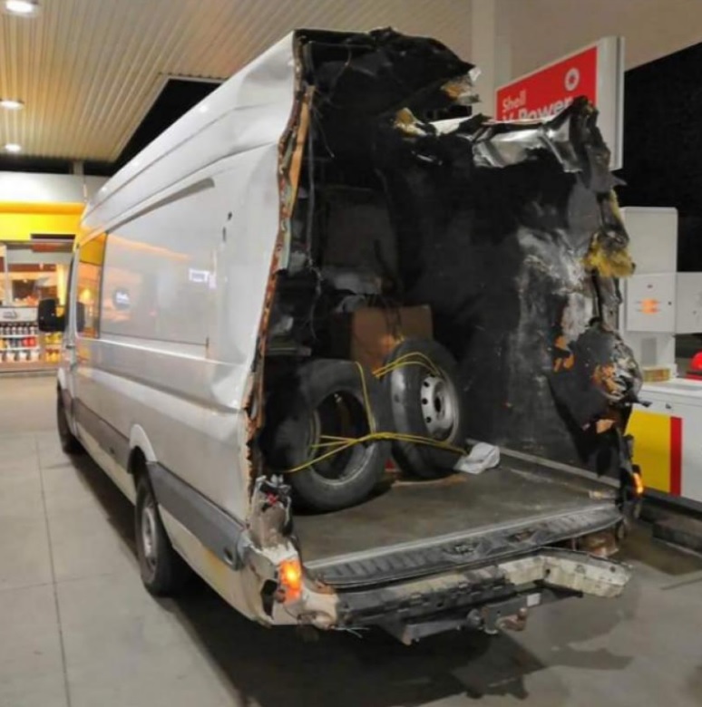Legile din Ungaria nu permit confiscarea unui vehicul accidentat, dar poliţiştii l-au atenţionat pe şofer să nu mai circule cu maşina. Proprietarul a acoperit părţile avariate ale maşinii şi şi-a continuat drumul. Dubiţa fost surprinsă apoi la o benzinărie, tot din Ungaria, la aproximativ 300 de kilometri de locul accidentului.