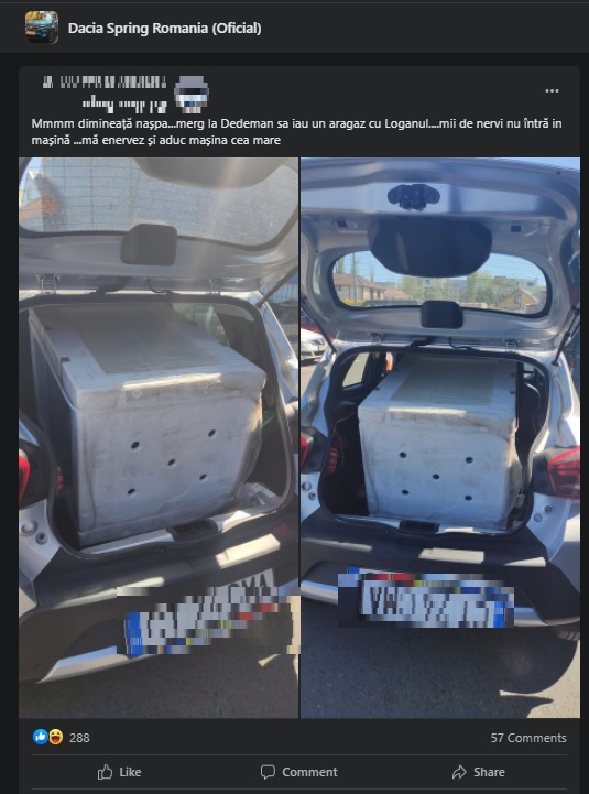 Modelul electric Dacia Spring nu face excepție. Un constanțean l-a pus la treabă, reușind să transporte cu micuțul Spring un aragaz. Bărbatul a postat pe grupul de Facebook Dacia Spring Romania (Oficial) două imagini în care ne arată că modelul românesc a trecut testul cu brio.
