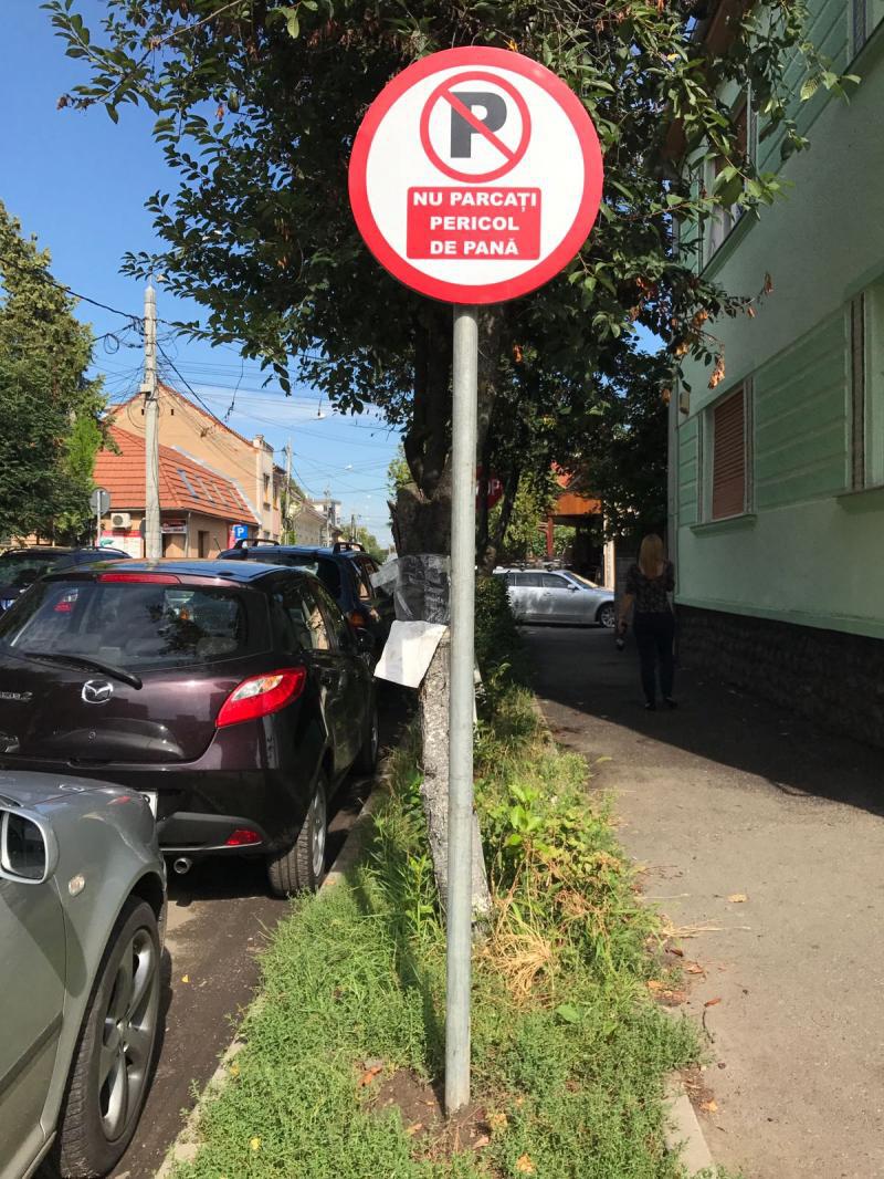 În Satu Mare a apărut un semn de circulaţie neobişnuit. Este „opera” unui om de afacere local, nemulţumit că maşinile parcau în faţa firmei sale, şi nu putea intra în curtea sediului. El a amplasat în stradă un indicator pe care stă scris „Nu parcaţi! Pericol de pană”. Poliţiştii au fost sesizaţi şi i-au dat o amendă cu 3.000 de lei.