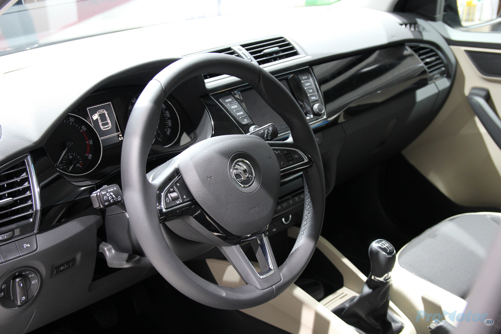 Sistemul multimedia instalat pe maşinile de la stand se mişcă bine prin meniuri şi are o grafică plăcută (în stilul celui de pe Golf 7, dar cu alte culori). În acelaşi timp, planşa de bord vopsită în negru lucios dă un plus de stil unui habitaclu destul de tern, dar este un magnet de amprente.