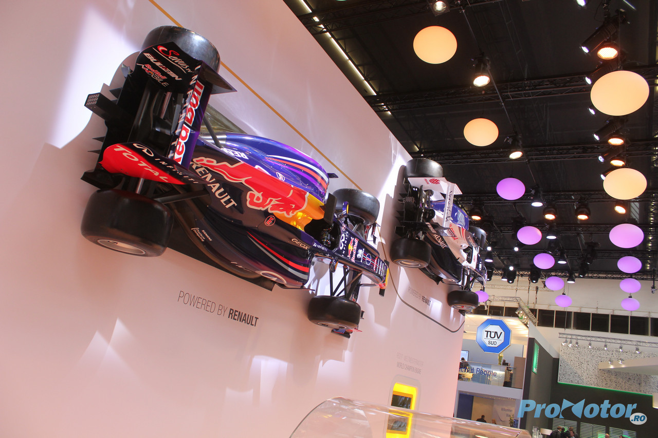 Renault nu a uitat nici de maşinile sale electrice, şi nici de implicarea sa în Formula 1. Astfel, francezii au atârnat pe două dintre pereţii standului câteva monoposturi de Formula 1 şi au afişat o scurtă istorie a motoarelor dezvoltate de ei pentru Marele Circ.