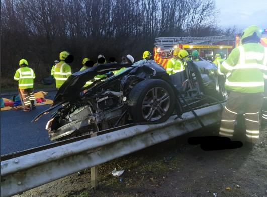 Accidentul s-a petrecut miercuri, 8 decembrie, la ora locală 07:10. Două autoturisme – Honda Civic și Ford Focus – și un camion – Volvo lorry – au fost implicate.