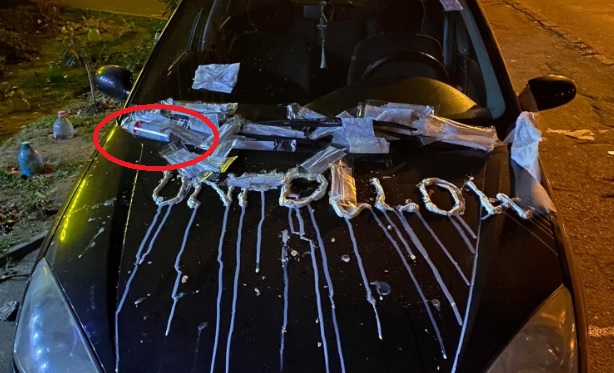 Un șofer și-a găsit mașina acoperită cu gunoie, asta după ce a lăsat-o parcată în fața blocului. De asemenea, pe capotă el a găsit scris cu frișcă „UNFOLOW”. Am dedus că a fost scris cu frișcă pentru că pe capotă se poate vedea un tub spray lăsat printre gunoaie.
