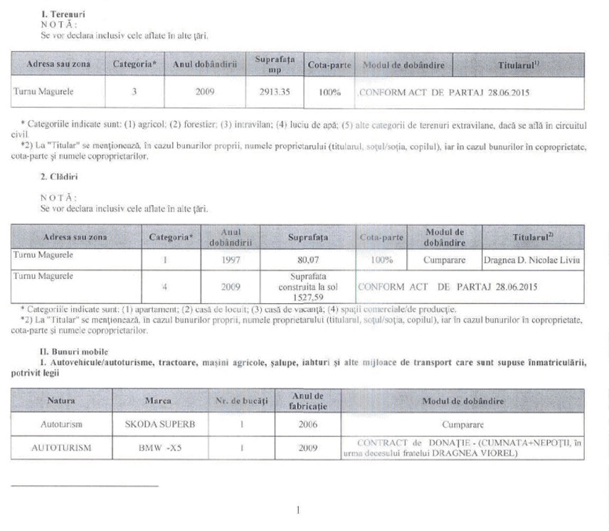 Liderul PSD Liviu Dragnea a primit în 2017 un BMW X5, fabricat în 2009, ca donaţie de la nepoţi, potrivit declaraţiei de avere a preşedintelui Camerei Deputatilor. În declaraţie mai este trecut şi un autoturism Skoda Superb, fabricat în 2006. Dacă în dreptul autoturismului Skoda este menţionat că acesta ar fi fost cumpărat, în dreptul BMW-ului este specificat „Contract de Donaţie (cumnata plus nepoţii)”.