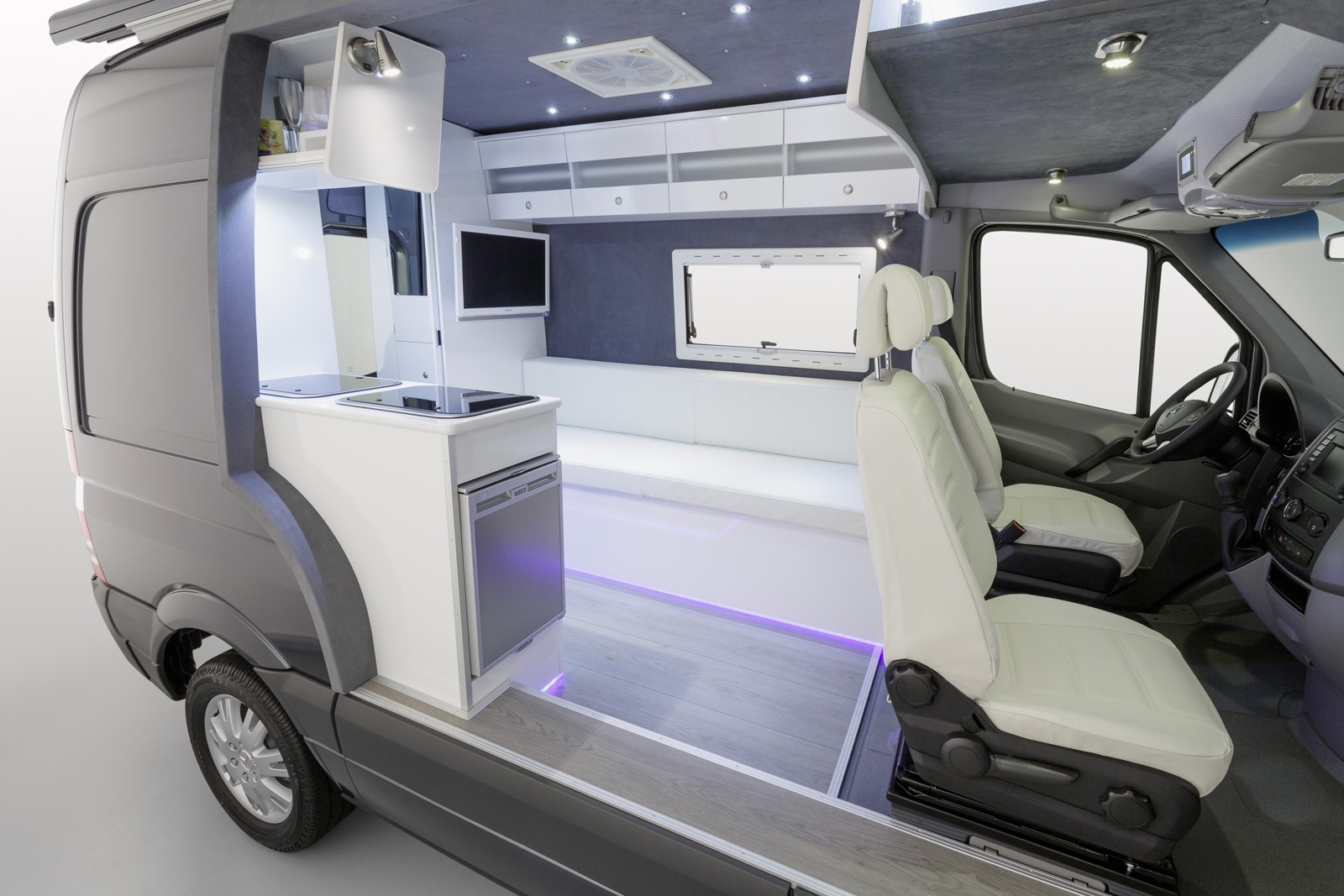 Bazat pe noul Mercedes-Benz Sprinter High-Roof, conceptul Caravan are ca punct principal de atracţie interiorul similar cu cel al unui yacht.
