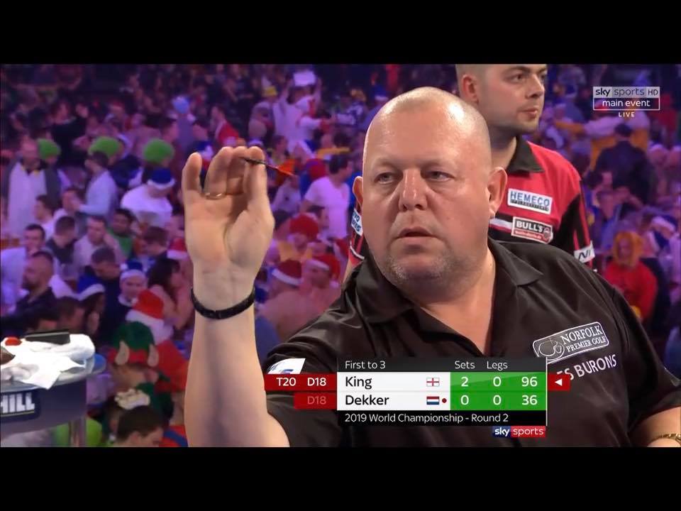 În vârstă de 55 de ani, King, care ocupă acum locul 21 în clasamentul PDC, după ce a câștigat peste 200.000 de lire sterline în ultimii doi ani, s-a calificat în optimi cu o victorie cu 4-0 în fața lui Steve Lennon.
