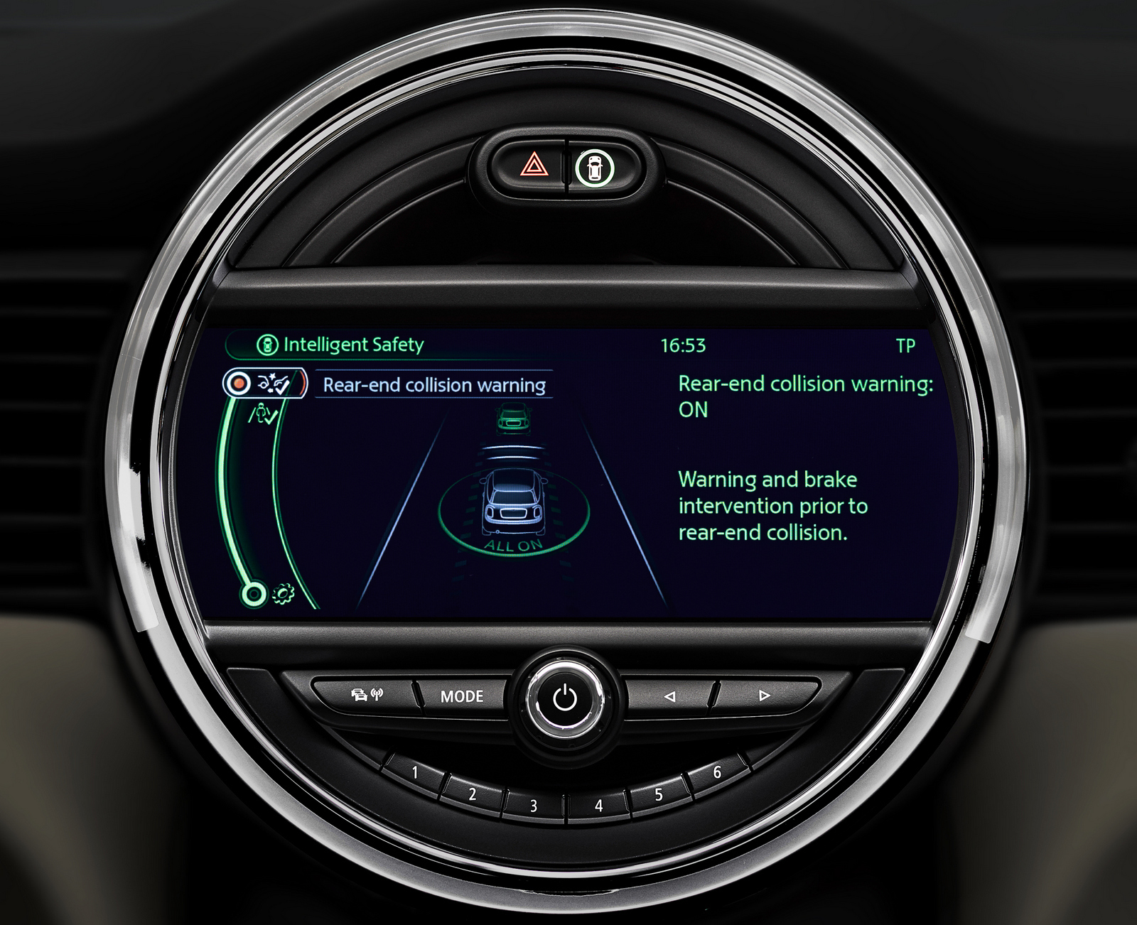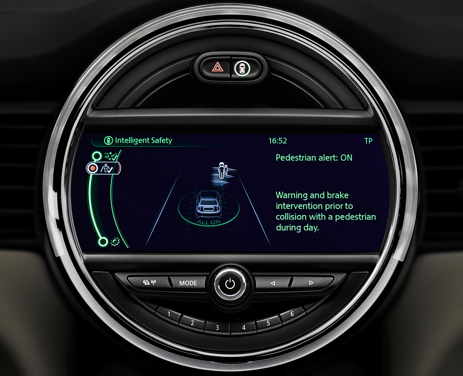 Printre sistemele noi ce urmează a fi implementate pe noile modele MINI se regăseşte şi cel de asistenţă în caz de impact cu funcţie de detectare a pietonilor. O cameră video multifuncţională amplasată pe parbiz la acelaşi nivel cu oglinda retrovizoare monitorizează electronic maşina din faţă, şi în acelaşi timp poate detecta pietonii care traversează strada în faţa maşinii.
