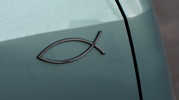 Poate aţi mai văzut pe străzi maşini care au pe spate ca emblemă simbolul unui peşte. Acesta este purtat ca un simbol religios.