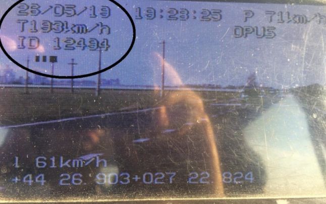 Momentul în care un şofer este prins cu 193 de km/h pe un drum din Călăraşi – FOTO