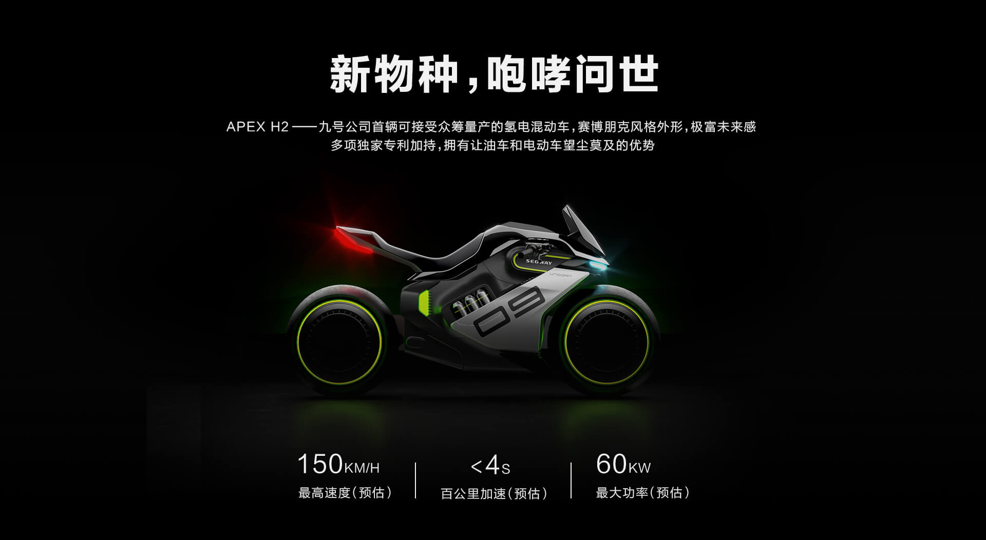 Apex H2 va fi alimentată cu hidrogen. Arătând ca un obiect desprins dintr-un film SF, Apex H2 este o motocicletă elegantă, care are un parbriz minimalist, un far subțire și roți mari care par să leviteze.