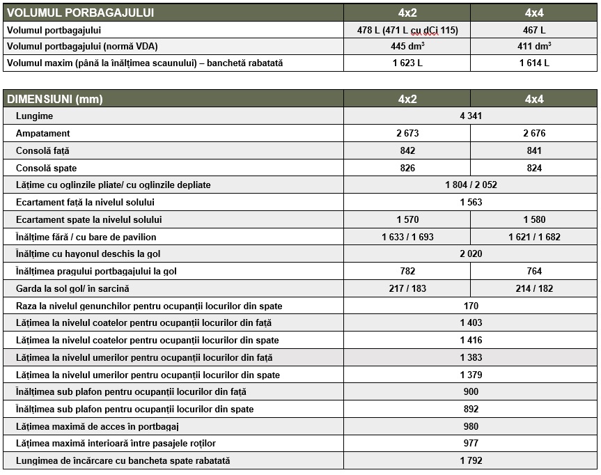 -dCi 115, în variantele 4×2 sau 4×4, cu cutie de viteze manuală cu 6 trepte.