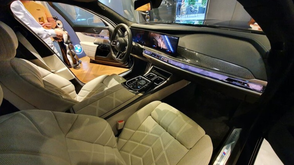 Sedanul electric din Munchen este o mașină super high-tech, cu un interior futurist. Modelul este echipat cu inovatorul BMW Theatre Screen, un ecran panoramic care înlocuieşte clasicele ecrane care erau montate în spătarele scaunelor.